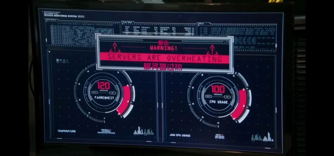 电视剧《疑犯追踪》里服务器过热警告。